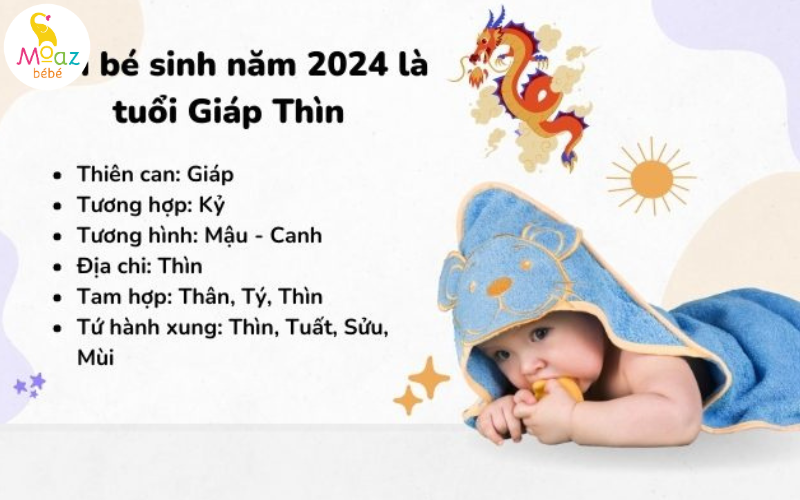 Các bé trai sinh trong khoảng thời gian từ ngày 10/2/2024 đến 28/1/2025 dương lịch (tức từ ngày Mùng 1 Tết Giáp Thìn đến ngày 29 tháng Chạp năm Giáp Thìn âm lịch) sẽ thuộc năm Giáp Thìn, tức là năm con Rồng. Trong hệ thống Can Chi, “Giáp” thuộc hành Mộc, còn “Thìn” thuộc hành Thổ. Sự kết hợp giữa Giáp (Mộc) và Thìn (Thổ) tạo nên một sự tương khắc nhẹ (Mộc khắc Thổ), cho thấy đôi khi những người tuổi này cần nỗ lực nhiều hơn để đạt được thành công.
